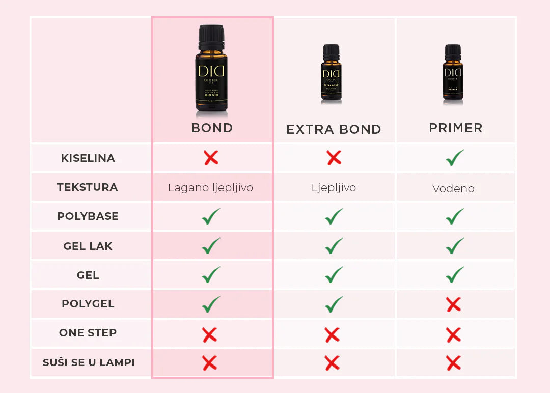 Riječ je o preparatu koji sprječava stvaranje mjehurića zraka i povećava prijanjanje gela. Primer bez kiseline za hibridne nokte sprječava stvaranje mjehurića zraka u manikuri i omogućuje da proizvodi bolje prijanjaju. Koristi se za hibridne boje.